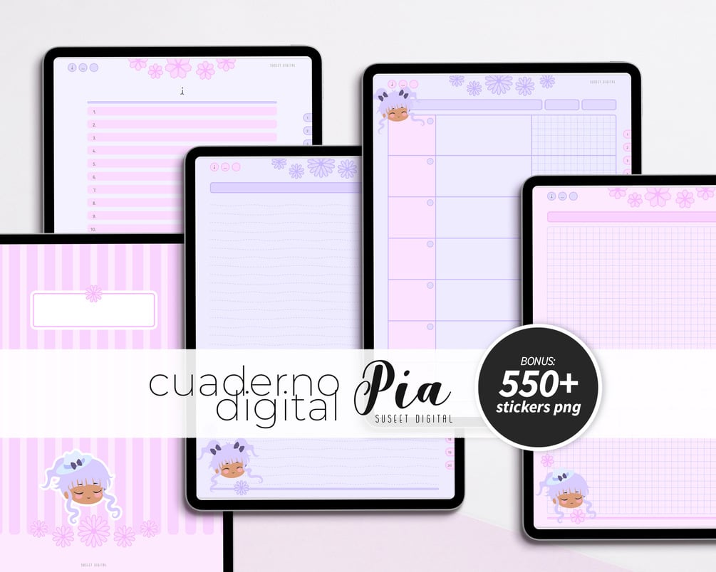 Digital notebook Pia: 20 subjects | Cuaderno digital Pia: 20 secciones